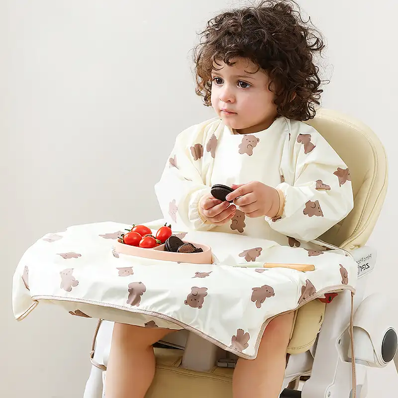 A reliable waterproof smock manufactured by our China-based factory, designed for easy customization and private label. Ideal for B2B buyers seeking durable, adjustable feeding smocks with fast production, strict quality control, and scalable order volumes. We support OEM & ODM services with a variety of fabric and design options to meet different brand needs.